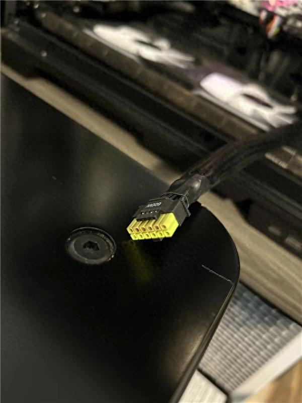 在测试中电源突然断电保护,玩家拆解后发现GPU侧的16-pin接口已经出现发黑和轻微熔化迹象。