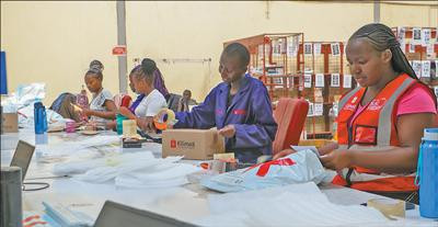在位于肯尼亚首都内罗毕近郊的电商平台Kilimall的仓库,员工穿梭于一排排货架间,清点货物、扫码、装箱……仓库外,身穿红色制服的“快递小哥”整装待发,准备配送。